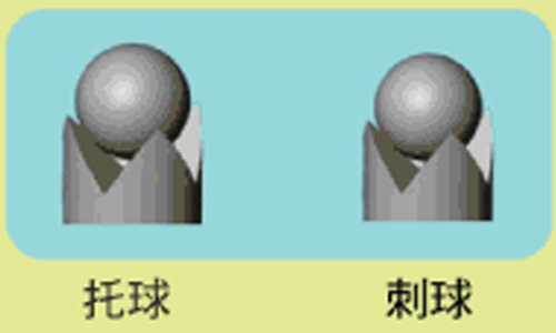 BGA(Ball Grid Array)焊球阵列封装,这类封装适用的头型为四爪和直径略小的四爪。主要取决于球的大小,锡球如果含铅,则用托球的方式,没有就用刺球的方式,可参考下图。